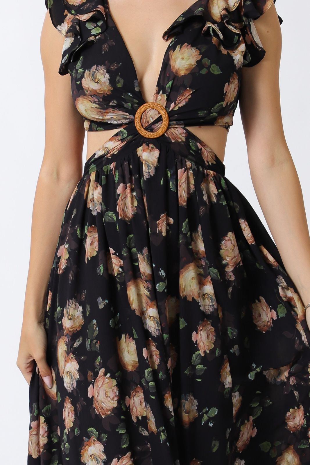 Ruffle Sleeve Cut-Out Waisted Maxi Dress