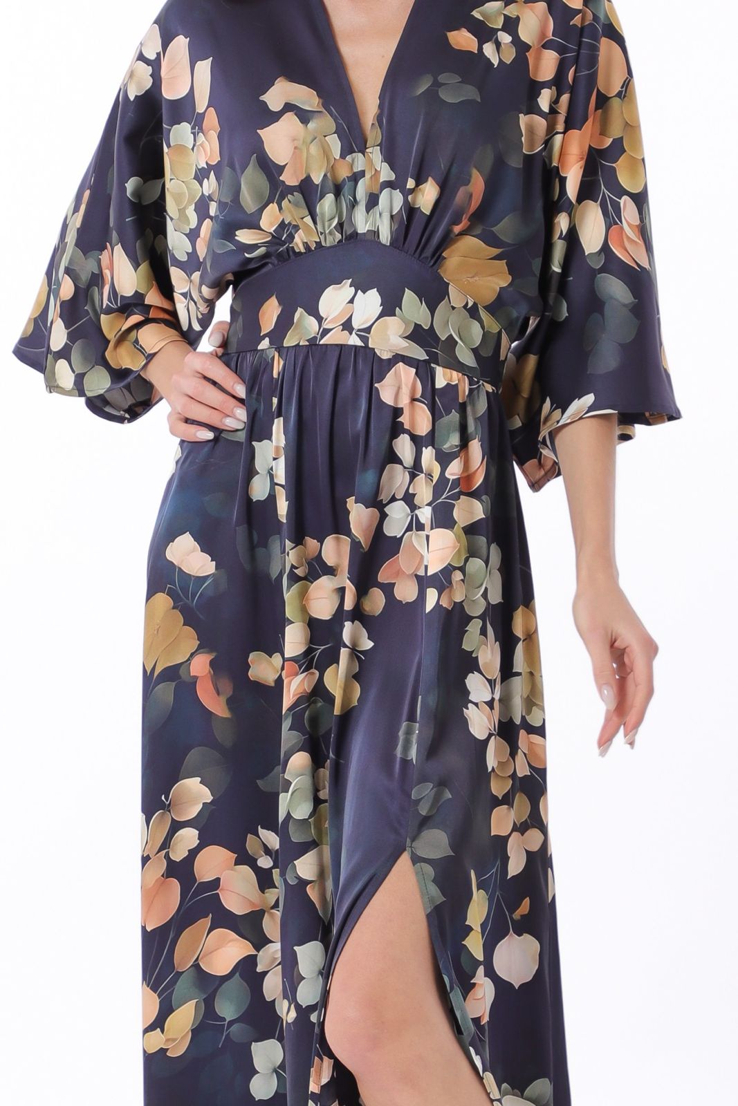 Kimono Sleeve Elastic Back Waisted Maxi Dress