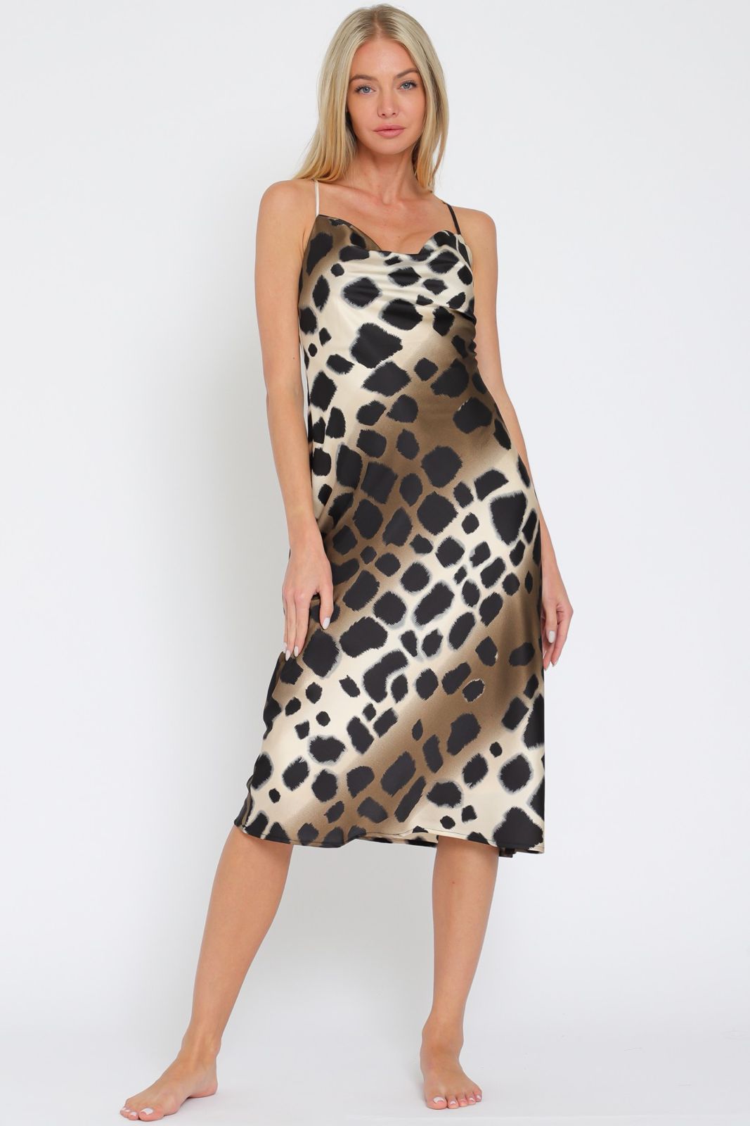 Cowl Neck Thin Adjustable Strap Slip Midi Dress